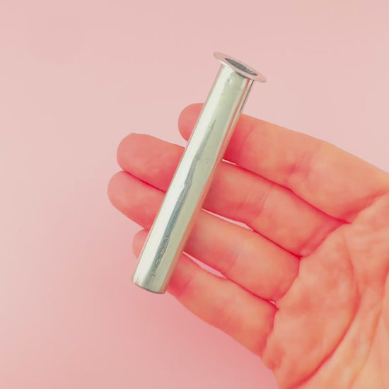 This sterling silver buttonhole holder, also known as a boutonnière holder, is a classic gentleman’s accessory designed to hold a fresh flower securely on the lapel. Cylindrical in form with a subtly flared rim, it reflects the practical elegance of late Victorian and Edwardian dress accessories.