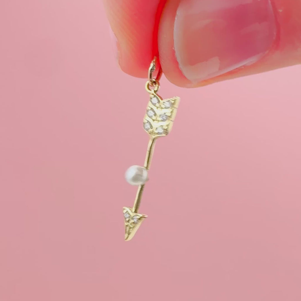 The Constance Arrow Pendant symbolizes direction, purpose, and chosen devotion. Historically, arrows represented focus and a clearly defined path, often connected to matters of love and intention. Crafted in 14ct yellow gold, the arrow is set with natural diamonds and finished with a single pearl.