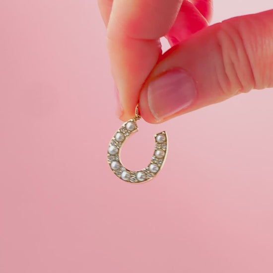 The Constance Horseshoe Pendant symbolizes luck and protection. Historically, horseshoes were worn to safeguard the wearer and attract good fortune, particularly when shown upright. Crafted in 14ct yellow gold, the horseshoe is set with natural pearls and diamonds.